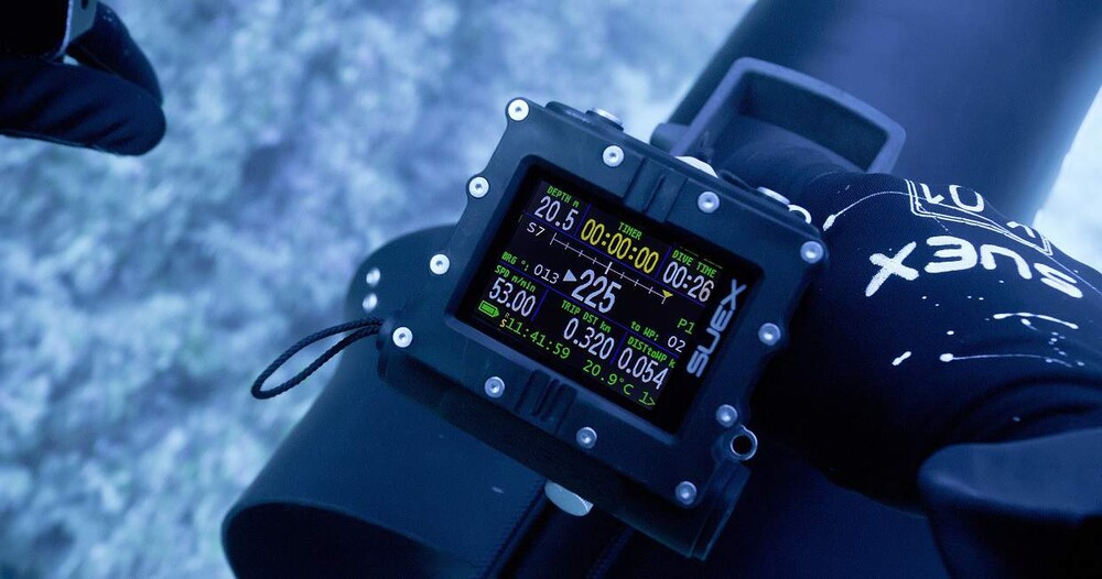 SUEX DRIVe 시스템과 연동되어 실제 다이빙 중 및 후에 중요 데이터를 실시간으로 제공하며,