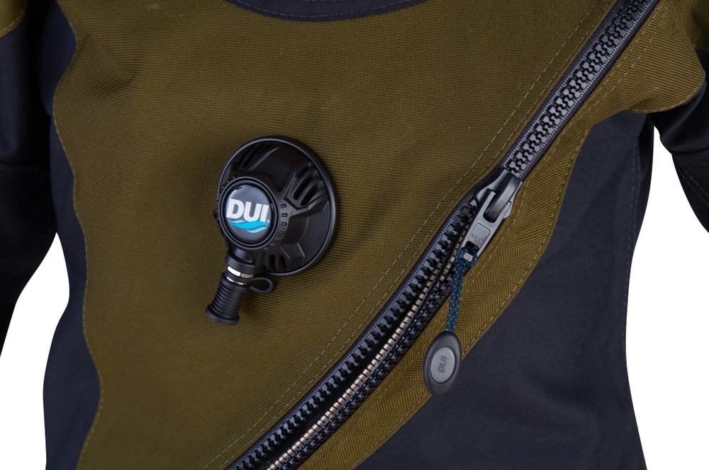 저프로파일 밸브가 기본 장착되어 있으며, 옵션으로 Si-Tech을 선택할 수도 있습니다.”— Scuba Lab Drysuit Review