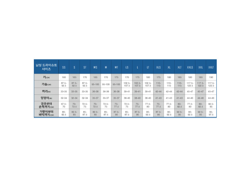 남성 15가지, 여성 18가지 사이즈로도 체형에 맞지 않는 드문 경우에는 주문 제작이 가능합니다.
