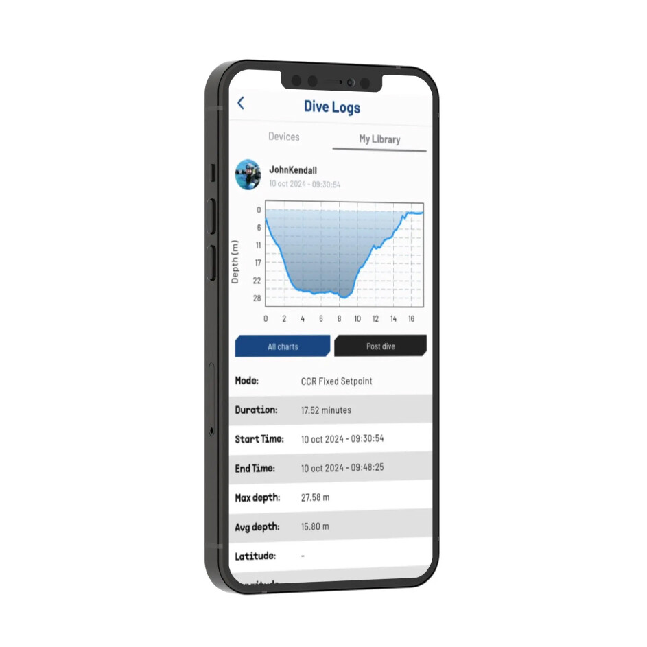 CCR 지원으로 테크, 멀티가스, 사이드마운트 및 게이지 모드를 사용할 수 있습니다.