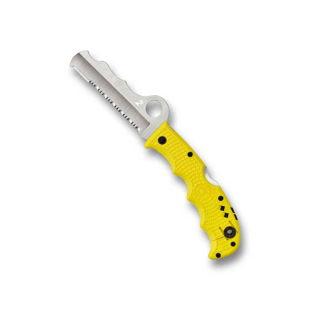 Spyderco의 혁신적인 Assist 구조용 나이프에 H-2 스테인리스 강을 사용해 탁월한 내식성을 더한 수상 구조용 멀티 툴 나이프입니다.