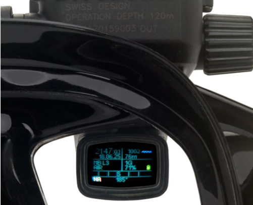 정밀 근접 광학: 마이크로 OLED ‘부유형’ 디스플레이는 약 1m 앞에 가상으로 보이는 이미지를 생성하여 주변 시야를 유지하면서 다이빙 데이터를 쉽게 모니터링할 수 있습니다.